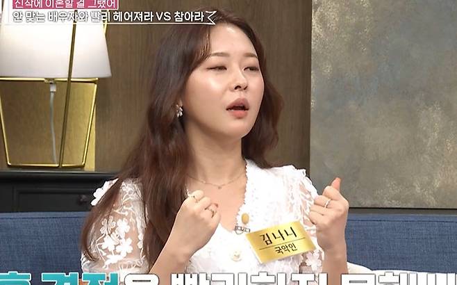 김나니는 4년간의 결혼 생활 끝에 파경을 맞았다고. 김나니는 "연애 기간이 짧았다. 5년 정도 같이 생활했는데 성격차이로 이혼했다"고 설명했다. 이어 "이혼 전엔 성격차이라고 하면 다른 이유가 있지 않을까 생각했는데 해보니 그 네 글자 안에 정말 많은 의미가 감겼더라"면서 "부부사이 문제는 부부만 알아 성격차이라고 하는 것이더라"고 덧붙였다.