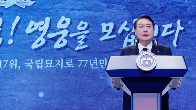 윤 대통령은 광복절을 하루 앞둔 오늘(14일) 국립서울현충원에서 엄수된 '한국 광복군 선열 합동 봉송식' 추모사에서 "무명의 희생과 헌신도 국가의 이름으로 끝까지 챙기고 기억할 것"이라며 이같이 밝혔습니다.