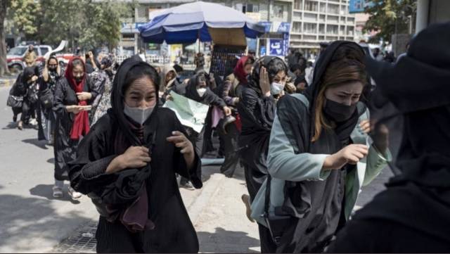 아프가니스탄 수도 카불에서는 전날 40여 명의 여성이 위협을 무릅쓰고 시위를 벌였다. 여성들은 ‘8월 15일은 블랙 데이’라고 적은 플래카드를 들고, “빵과 일, 자유”라는 구호를 외치며 교육부 건물 앞까지 행진을 시도했다.