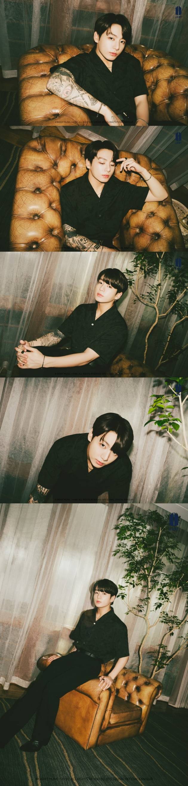 정국은 소파에 앉아 도발적인 눈빛으로 정면을 바라보는가 하면 차가운 도시 남자의 우아한 카리스마도 내뿜으며 여심을 뒤흔들었다.