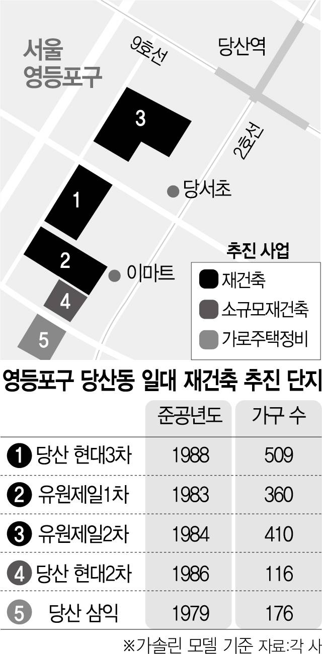 서울 3대 업무지구 중 하나인 여의도와 가까운 영등포구 당산동 일대 단지들이 정비사업에 속도를 내고 있다.