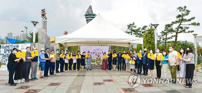 (속초=연합뉴스) 14일 속초 청초호수공원 평화의 소녀상 앞에서 2022년 일본군 위안부 피해자 기림의 날 행사가 열리고 있다.
