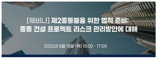 14일 업계에 따르면 이번 웨비나에서는 중동 내 건설 프로젝트 중 유가 불안전성, 물가상승 등으로 인한 리스크 관리 방안이 공유된다.