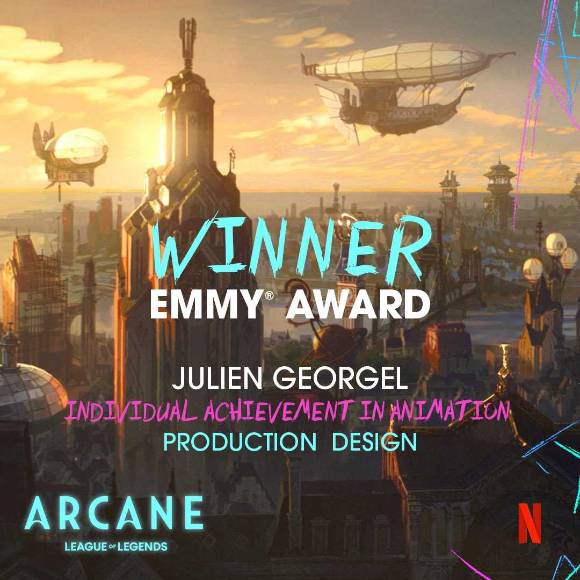 에미상 본상 시상에 앞서 발표된 개인상 수상자 내용에 따르면 아케인 제작에 참여한 포티셰 프로덕션 소속 스태프 세 명이 프로덕션 디자인, 백그라운드 디자인, 컬러 등 3개 분야 수상자에 이름을 올렸다.