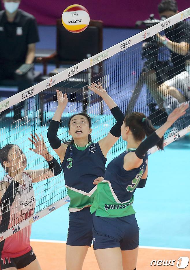 (순천=뉴스1) = 14일 전남 순천 팔마체육관에서 열린 2022 순천 도드람 컵대회 현대건설과 인삼공사의 경기에서 현대건설 김다인이 토스하고 있다. (현대건설 배구단 제공) 2022.8.14/뉴스1