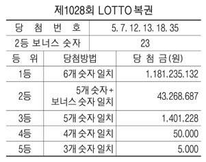 [표] 제1028회 LOTTO 복권