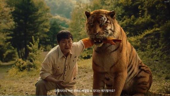14일 광고업계에 따르면 컴퓨터그래픽(CG) 맹수를 활용한 광고가 새로운 트렌드로 뜨고 있다. '호랑이에게 물려가도 정신만 차리면 산다'는 제목의 현대모비스 광고는 지난 6월 공개된 후 유튜브 조회수 600만회를 넘겼다. 드라마 '도깨비'와 '미스터 선샤인', 영화 '마이네임'에 출연한 배우 윤경호가 호랑이에게 팔 한쪽을 물려 있는 모습이 SNS에 공유되면서 인기몰이 중이다. 동물 콘셉트의 광고는 재미와 호기심 유발을 불러일으켜 높은 조회수로 이어졌다. 현대모비스의 호랑이 광고는 모빌리티와 소프트웨어라는 생소한 개념을 소비자들에게 쉽게 전달하기 위해 기획됐다. 호랑이를 활용한 친숙한 속담을 영상화했다.