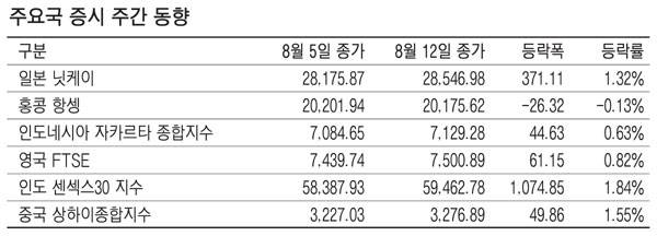 [표] 주요국 증시 주간 동향