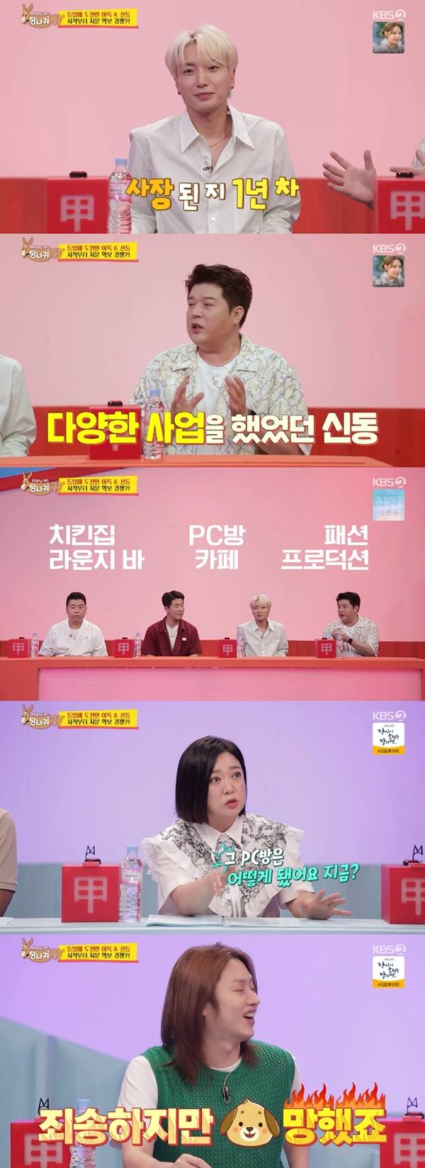 또 신동은 "요즘에는 PC방에 가면 먹으러 간다잖나. 제가 처음으로 PC방에 휴게 음식점을 냈다. 거의 최초다"라고 말했다. 해당 PC방에 대해 김희철은 "망했다"고 말해 웃음을 안겼다.