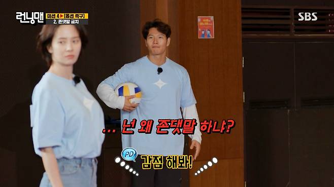 '존댓말 금지' 미션에서 주우재는 PD에게 존댓말을 해 감점됐다. 그러자 같은 팀 김종국은 PD가 존댓말하는 모습을 포착하고 "넌 왜 존댓말 하냐?"고 지적했지만, 다음 주에 관두는 보필 PD는 "감점해봐~"라고 겁 없는 깐족미를 드러내 웃음을 선사했다.