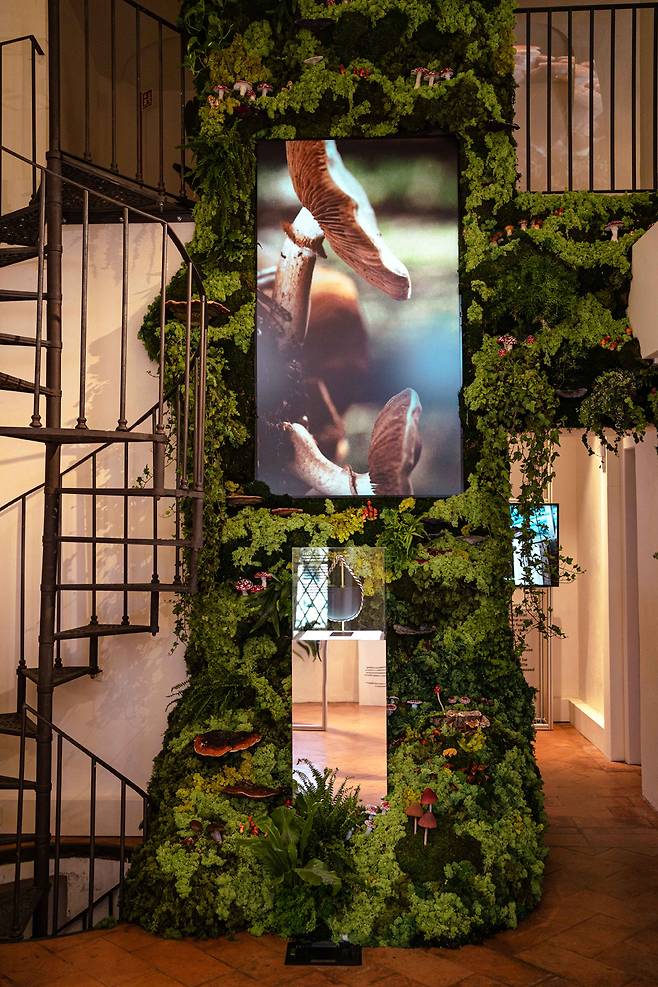 버섯 조각상: 2022년 여름 컬렉션의 테마를 강조하는 실물보다 큰 버섯 조각상들이 전시장 곳곳과 외부에 배치되었다. 각 조각상은 100% 재활용 가능한 아크릴 시트로 제작되었다.