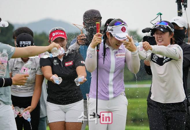 [포토]이소영 '짜릿한 우승 축하 물세레'