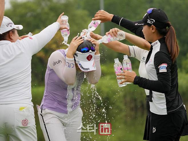 [포토]이소영 '폭포수 같은 우승 축하 물세레'