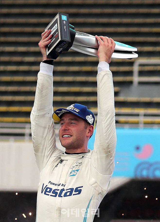 [이데일리 방인권 기자] 벨기에 드라이버 스토펠 반도른(메르세데스)이 14일 서울에서 막을 내린 세계 최고 전기 자동차 경주 대회 포뮬러E의 21-22시즌 챔피언에 등극한 뒤, 트로피를 들고 포즈를 취하고 있다.