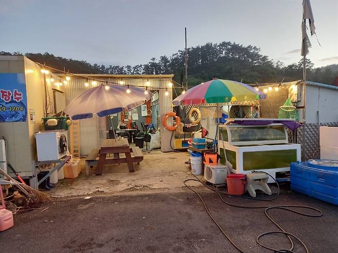 가게에 가까이 가자 마침 사장으로 보이는 젊은 남성이 갓 잡아 온 생선들을 수조에 풀어 넣고 있었다. 여기가 고향이지만 인천에 나가 살면서 금요일 저녁부터 주말에만 들어와 영업하는 간이 횟집이라 했다.