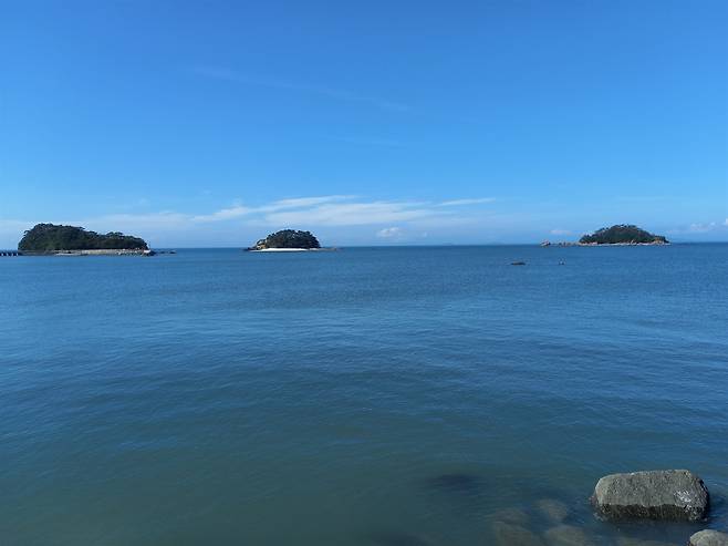 | ▲ 기적의 바닷길 소야도 큰말 앞의 갓섬, 간뎃섬, 물푸레섬은 썰물 때면 바닷길이 열린다. 물경 1500m. 국내 5번째다. |
