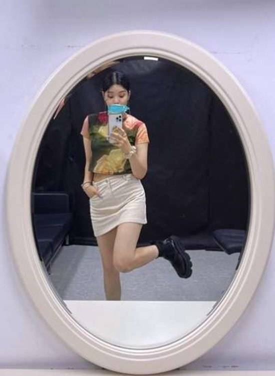 공개된 사진 속 린은 거울 앞에서 셀카를 남기고 있는 모습이다. 린은 한 쪽 다리를 들어 올리고 러블리한 매력을 발산하고 있다.