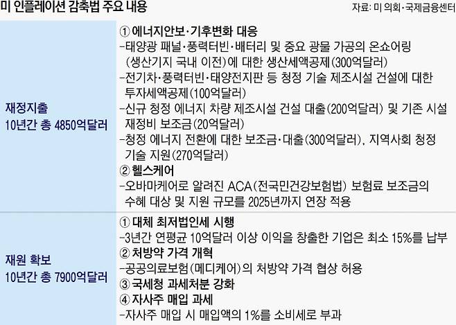 법인세를 늘려 마련한 재원을 에너지 안보와 기후위기, 서민 의료 지원 등에 집중 투자하면 치솟는 에너지 비용과 의료 서비스 가격을 잡을 수 있다는 것이 IRA의 기본 구상이다.