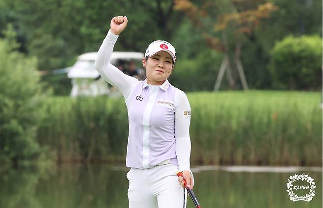 (서울=뉴스1) 신웅수 기자 = 14일 경기 포천 몽베르CC에서 열린 '대유위니아 MBN 여자오픈' 마지막 라운드에서 우승한 이소영이 세리머니를 하고 있다. (KLPGA 제공) 2022.8.12/뉴스1