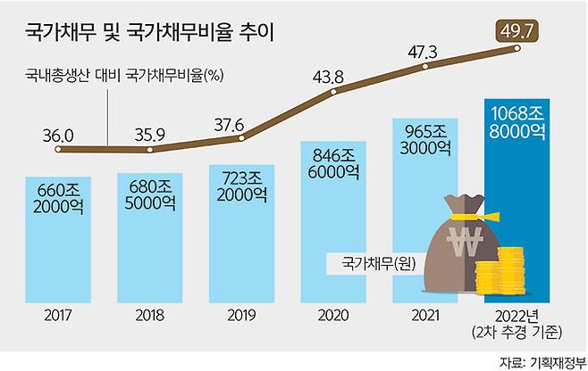 정부가 ‘긴축 모드’에 들어간 건 나랏빚 증가세가 심상찮기 때문이다.