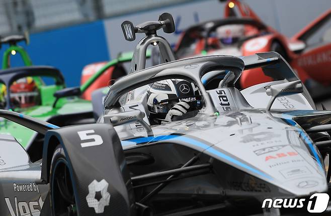 (서울=뉴스1) 구윤성 기자 = 14일 오후 서울 송파구 잠실종합운동장 일원에서 열린 ABB 포뮬러E 챔피언십 시즌8 '2022 하나은행 서울 E-Prix(E-프리)' 결승 경기에서 메르세데스-EQ의 스토펠 반도른(벨기에)가 서킷을 달리고 있다. 2022.8.14/뉴스1