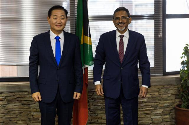 한 부회장은 지난 11일 남아프리카공화국의 행정수도 프리토리아에서 이브라힘 파텔 통상산업부 장관과 그레이스 날레디 만디사 판도 국제협력부 장관을 접견(사진)했다. 남아공은 삼성전자의 아프리카 대륙 사업 거점 국가로, 동부 항구도시 더반에서는 TV 제조 공장도 운영하고 있다. 한 부회장은 12일에는 아프리카 남부 국가 레소토의 수도 마세루에서 레치에 3세 국왕과 마체포 몰리세 라마코에 외교국제관계부 장관을 면담했다.