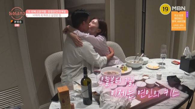 '오늘부터 1일'을 선언한 두 사람은 진한 키스를 나눴고, 한정민은 "나 못참는다고.. 나 남자다. 씩씩하고 남성 호르몬 드럽게 많은 남자다. 나 쌩쌩한 사람이다"라고 말해 웃음을 안겼다. 이를 지켜보던 MC 유세윤은 "지금 남자는 어떤 상태냐"는 질문에 "지금 식탁에 가려져서 그런데.. 지금 많은 것들이 감춰져 있다"라고 의미심장한 답을 했다.