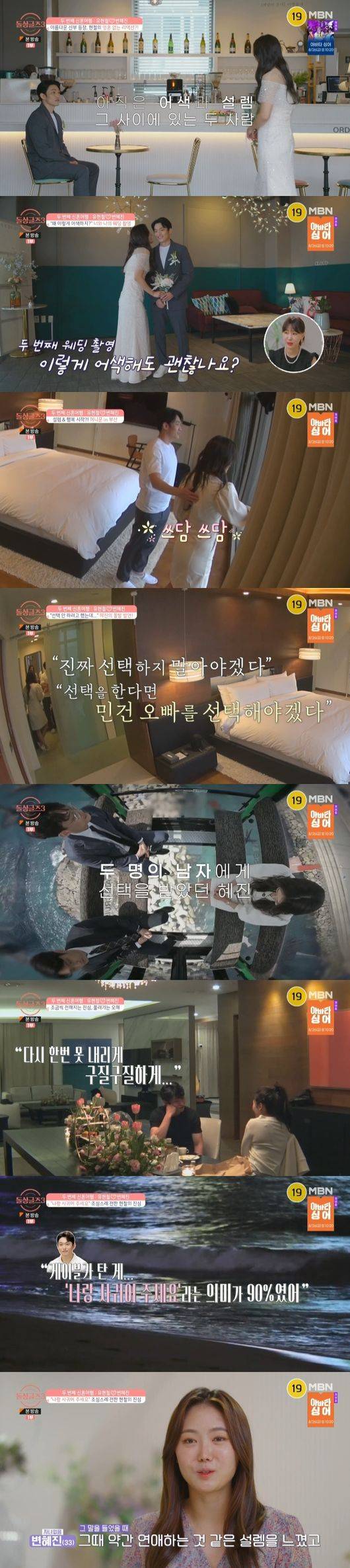 14일 방송된 MBN, ENA 예능 '돌싱글즈3'에서는 최종선택 후 1박 2일 신혼여행을 떠난 한정민♥조예영, 유현철♥변혜진 커플의 모습이 그려졌다.