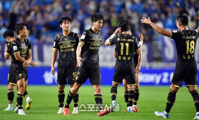 수원삼성 고명석이 14일 수원월드컵경기장에서 열린 2022 K리그 수원삼성과 성남FC의 경기 전반 선제골을 성공시킨 후 환호하고 있다. 2022.8.14.