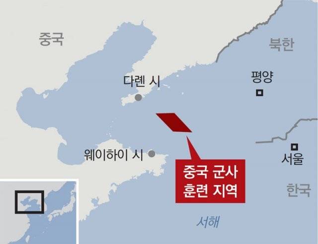 14일 중국해사국은 홈페이지를 통해 “15일 0시부터 20일 12시까지 황해(서해) 북부지역에서 군사 임무를 진행한다”고 공지했다. 이어 이 지역 해역 4개 좌표를 적시하며 “임무 기간 내에 선박 진입을 금지한다”고 밝혔다. 해당 좌표는 랴오닝성 다롄시∼산둥성 웨이하이시 사이 해역으로 백령도에서 약 100km 떨어진 곳이다. 군사 활동의 내용에 대해선 공개하지 않았다. 다롄항 인근 보하이해 북부에서도 15일 오전 6시부터 21일 오후 6시까지 같은 임무를 수행한다며 선박 진입을 금지시켰다.
