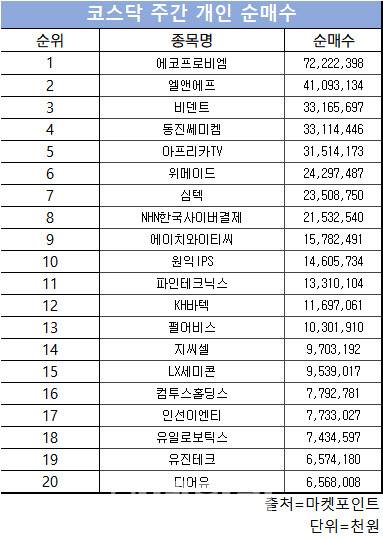 코스닥 주간 개인 순매수 1위 '에코프로비엠'