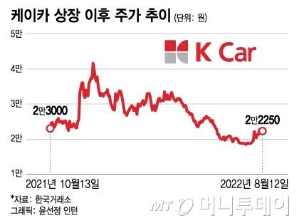 한앤컴퍼니가 지분 72%를 소유한 케이카의 주가도 지난해 10월13일 상장 이후 계속 미끄러지고 있다.