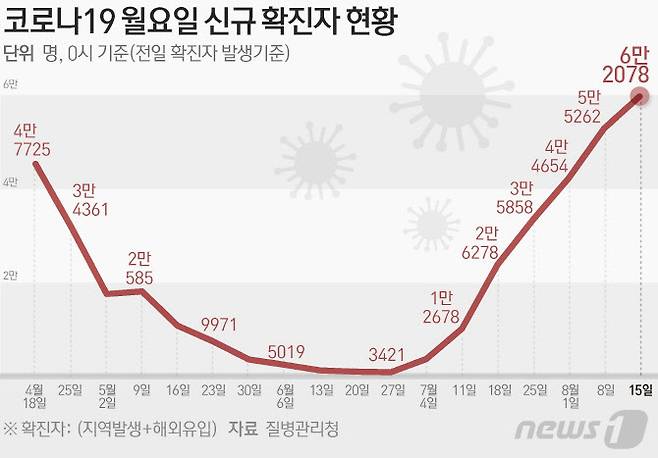 코로나19 감염으로 인한 15일 0시 기준 신규 확진자는 6만 2078명을 나타냈다.