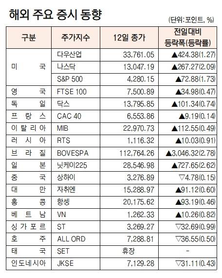[데이터로 보는 증시]해외 주요 증시 동향( 8월 12일)