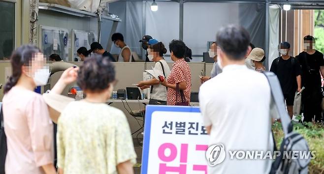 (서울=연합뉴스) 김도훈 기자 = 광복절인 15일 오전 서울 송파구보건소에 마련된 코로나19 임시선별진료소를 찾은 시민들이 검사를 기다리고 있다.