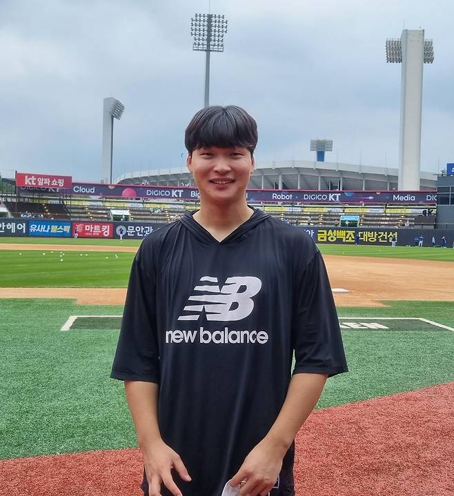 (수원=연합뉴스) 김경윤 기자 = kt wiz 사이드암 투수 이채호가 14일 수원케이티위즈파크에서 연합뉴스와 인터뷰한 뒤 포즈를 취하고 있다. 2022.8.15