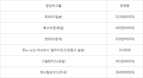 - 현대차, 세계 완성차 판매 '톱3' 첫 진입