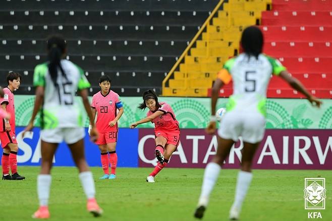 황인선호가 2022 국제축구연맹(FIFA) 20세 이하(U-20) 여자 월드컵 조별리그 2차전에서 아프리카의 강호 나이지리아에 석패했다.