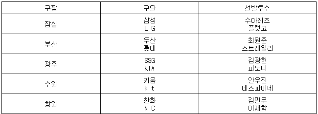 ▲ 16일 선발투수