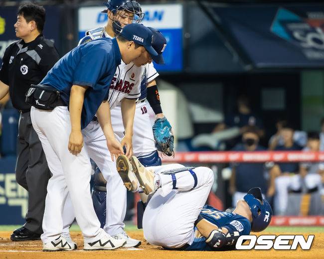 NC 박건우는 두산과의 잠실 3연전 마지막 경기에서 4회 초 2S 3B 풀카운트에서 두산 선발 스탁의 153Km/h 직구에 오른손을 맞고 고통스럽게 쓰러졌다.