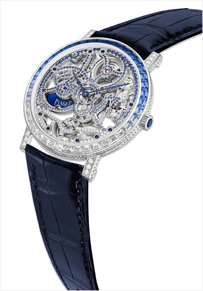 전 세계에서 가장 얇은 젬스톤 세팅 스켈레톤 타임피스로 손꼽히는 이 모델은 하늘의 색에서 영감을 받은 그라데이션으로 완성 됐다. 그라데이션은 가장 밝은 화이트 다이아몬드와 가장 짙은 블루 사파이어가 자연스럽게 이어지는 컬러를 선보인다.