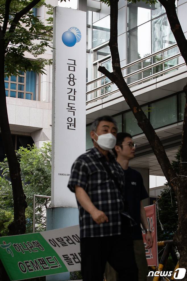 (서울=뉴스1) 유승관 기자 = 15일 서울 여의도 금융감독원 앞으로 시민들이 지나고 있다.