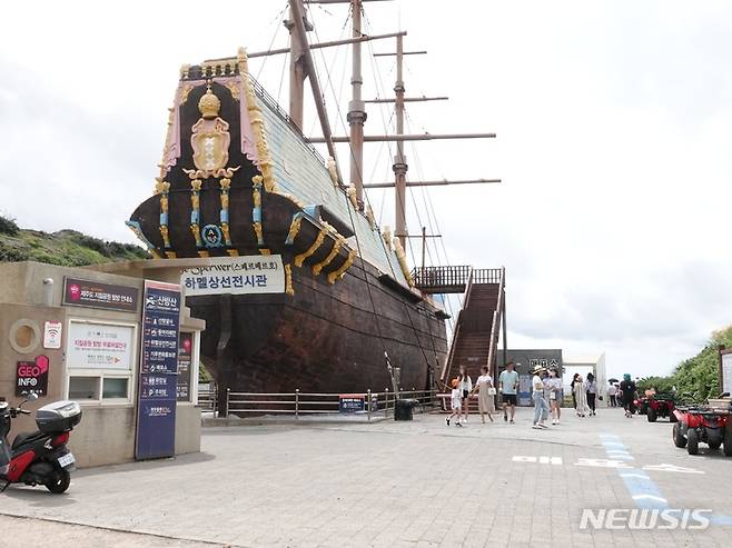 [제주=뉴시스] 오영재 기자 = 15일 제주 서귀포시 안덕면 하멜상선전시관에 관광객들의 발길이 이어지고 있다. 하멜상선전시관은 약 360여년 전 네덜란드인 헨드릭 하멜(1630~1692)이 제주에 표류했던 것을 기념해 만들어졌다. 2022.08.15. oyj4343@naver.com