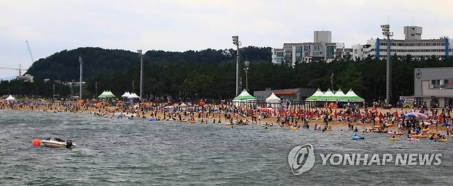 (속초=연합뉴스) 이종건 기자 = 광복절인 15일 흐리고 바람이 다소 강하게 부는 날씨에도 속초해수욕장을 찾은 피서객들이 연휴 마지막을 즐기고 있다.