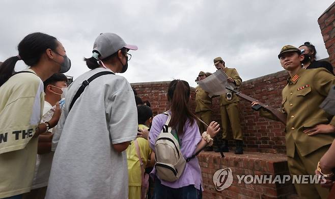 (서울=연합뉴스) 서대연 기자 = 어린이들이 광복절인 15일 서울 서대문구 서대문형무소에서 열린 서대문독립페스타에서 역사 퀴즈에 참여하고 있다. 2022.8.15
