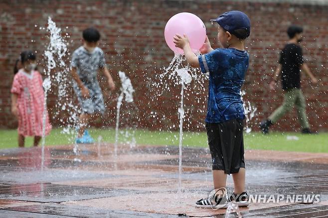 (서울=연합뉴스) 서대연 기자 = 한 어린이가 광복절인 15일 서울 서대문구 서대문형무소 분수대에서 놀고 있다. 2022.8.15