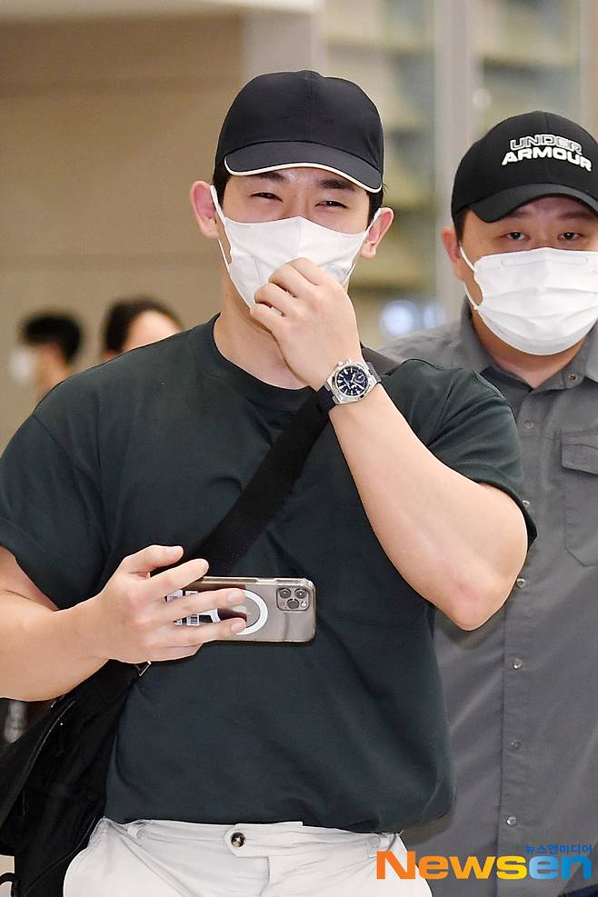 가수 원호(Wonho)가 8월 15일 오후 인천 중구 운서동 인천국제공항 제 2여객터미널을 통해 뮤지컬 ‘이퀄’ 일본 프로모션 일정을 마치고 입국하고 있다.
