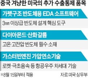 미국이 15일 수출 통제를 시작한 반도체와 가스터빈 엔진 관련 소재와 기술은 중국이 중점 개발하고 있는 분야라는 점에서 치명적이다.