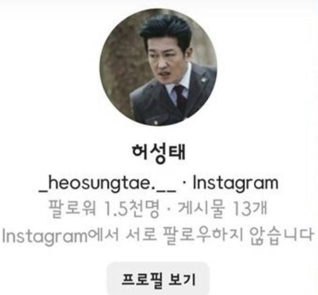 허성태의 계정은 "@heosungtae"인데 누군가 허성태를 사칭해 계정을 만들었다.