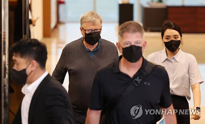 (서울=연합뉴스) 김인철 기자 = 마이크로소프트 창업자인 빌 게이츠 빌 앤드 멀린다 게이츠 재단 공동 이사장이 15일 오후 강서구 서울김포비즈니스항공센터(SGBAC)로 입국하고 있다. 2022.8.15